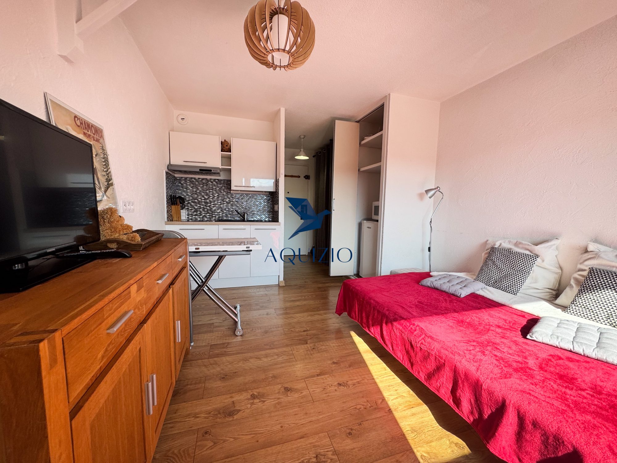 - D’une pièce principale avec coin nuit et cuisine équipée