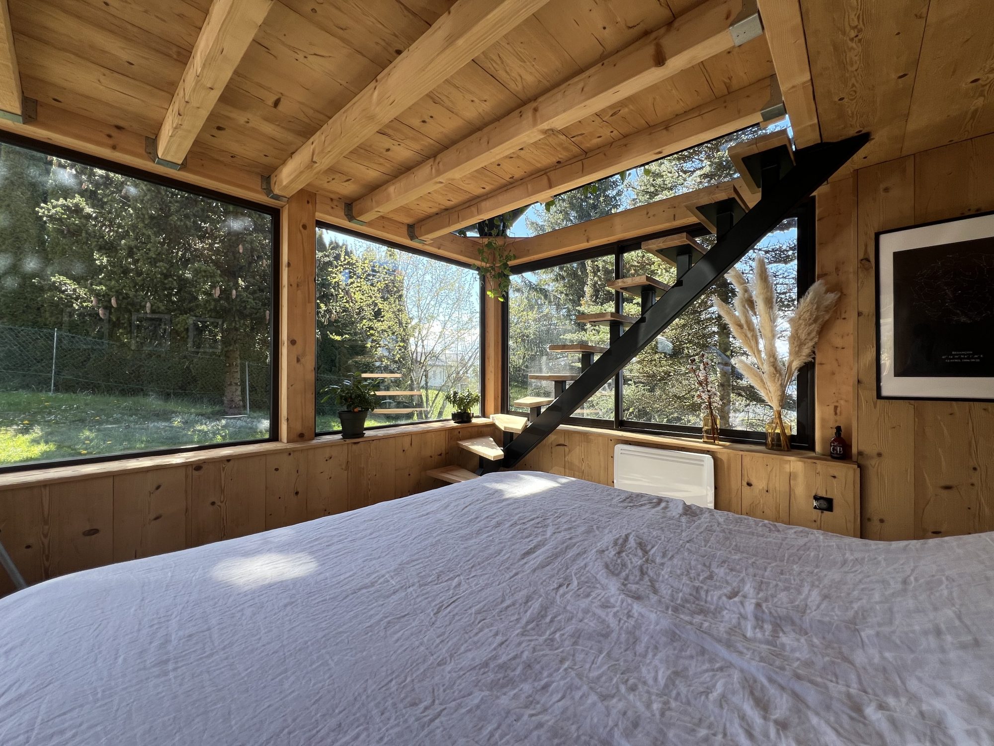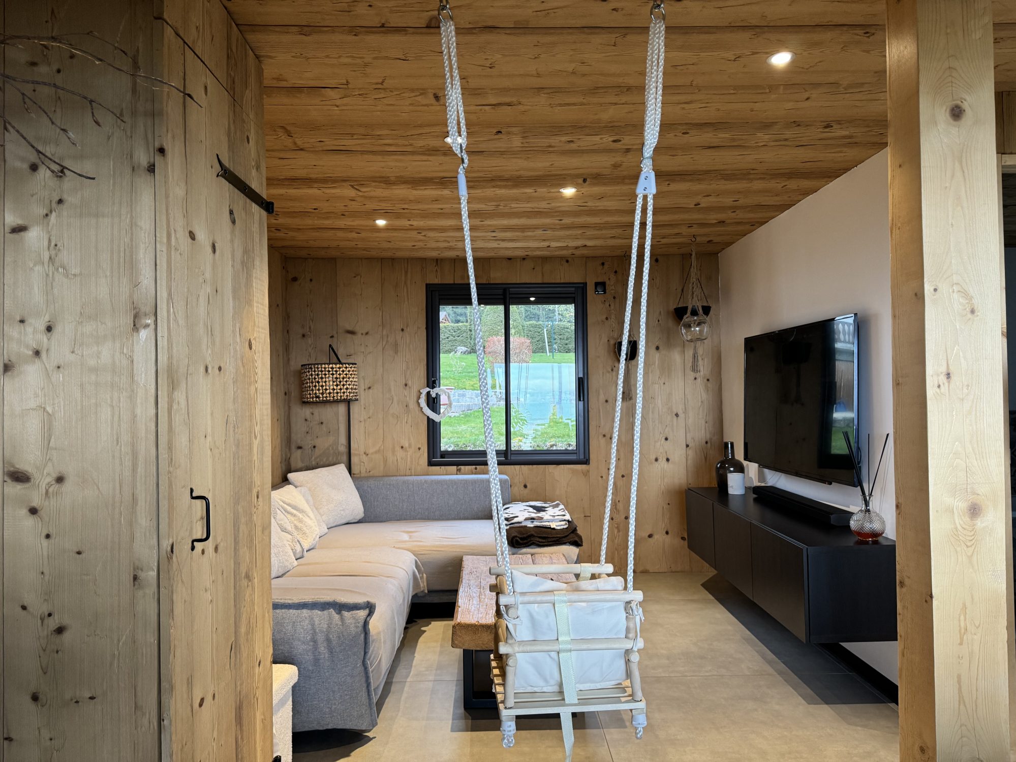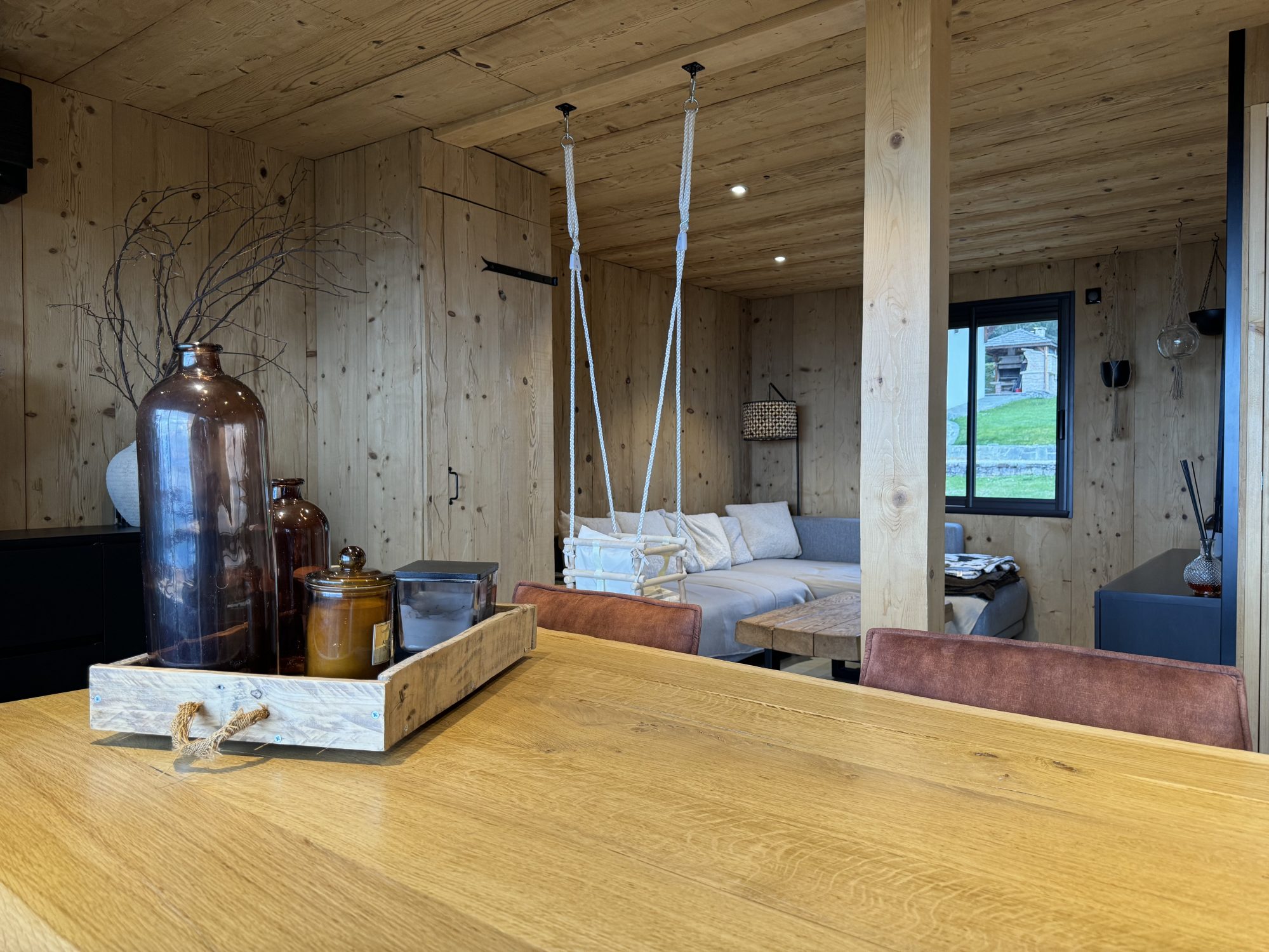 L’emplacement du chalet est idéal pour profiter du calme et du soleil tout au long de la journée, créant ainsi une ambiance lumineuse et chaleureuse.