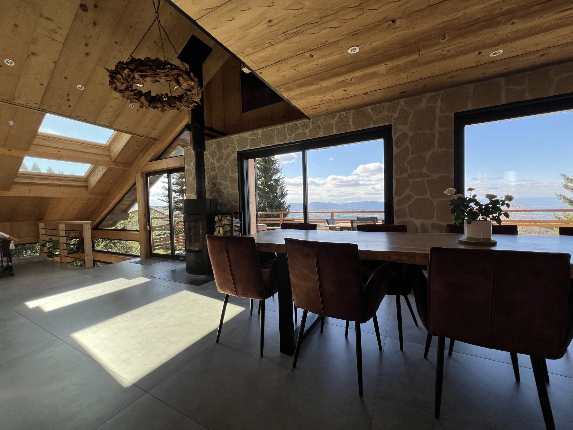 En à peine 3 pas, vous aurez accès à une grande terrasse de plus de 50m2 surplombant la vallée, vous permettant de profiter d’une vue imprenable sur les montagnes du Jura ainsi que le bassin lémanique.