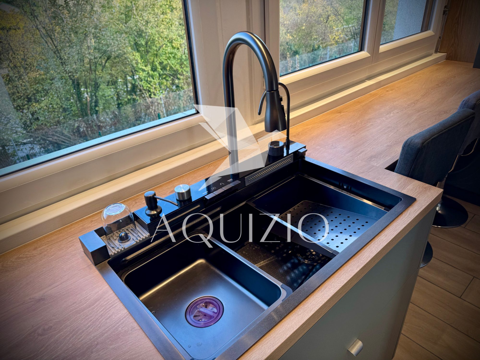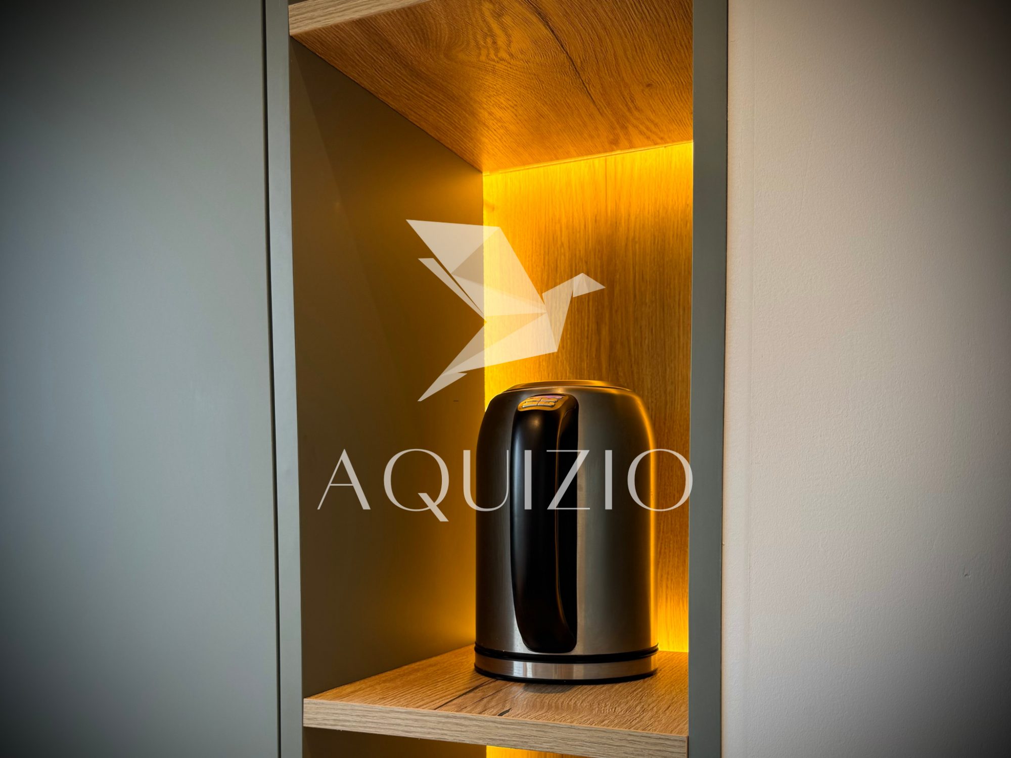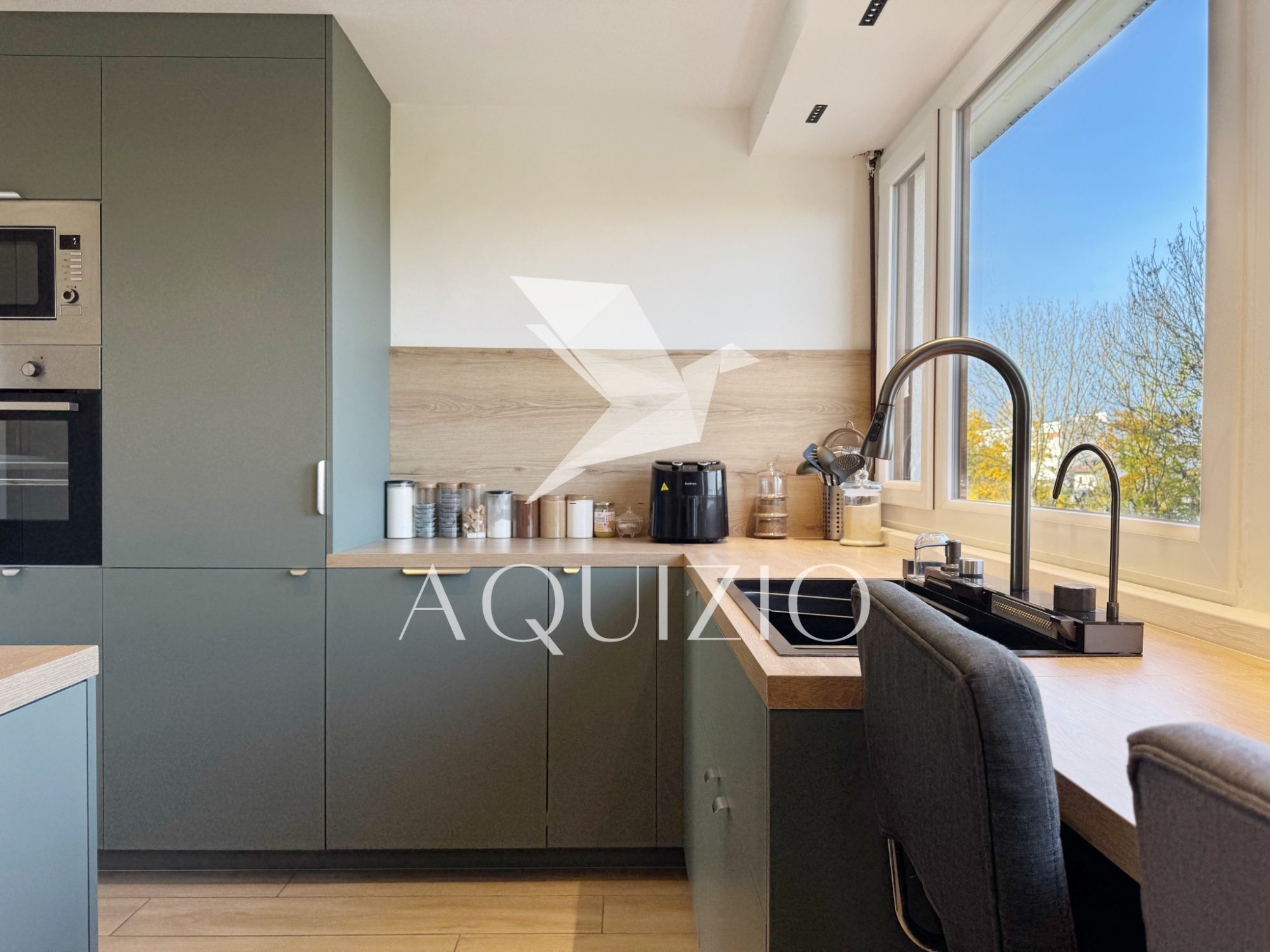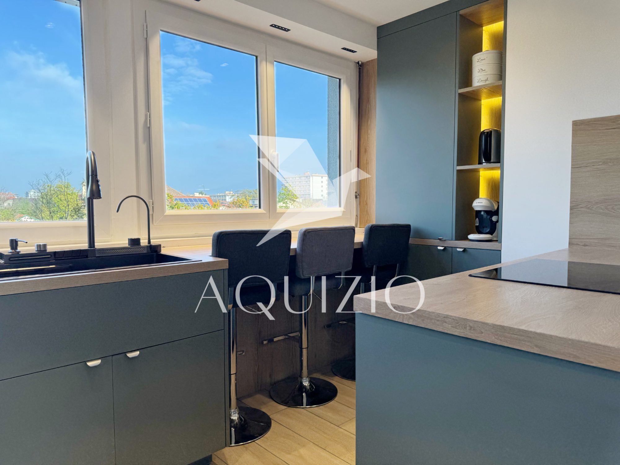 L’appartement est composé d’un séjour lumineux donnant sur une balcon avec une exposition Sud, vous offrant un véritable bain de lumière. La cuisine est entièrement aménagée avec des équipements haut de gamme (évier multifonctions, lumières intégrées…).