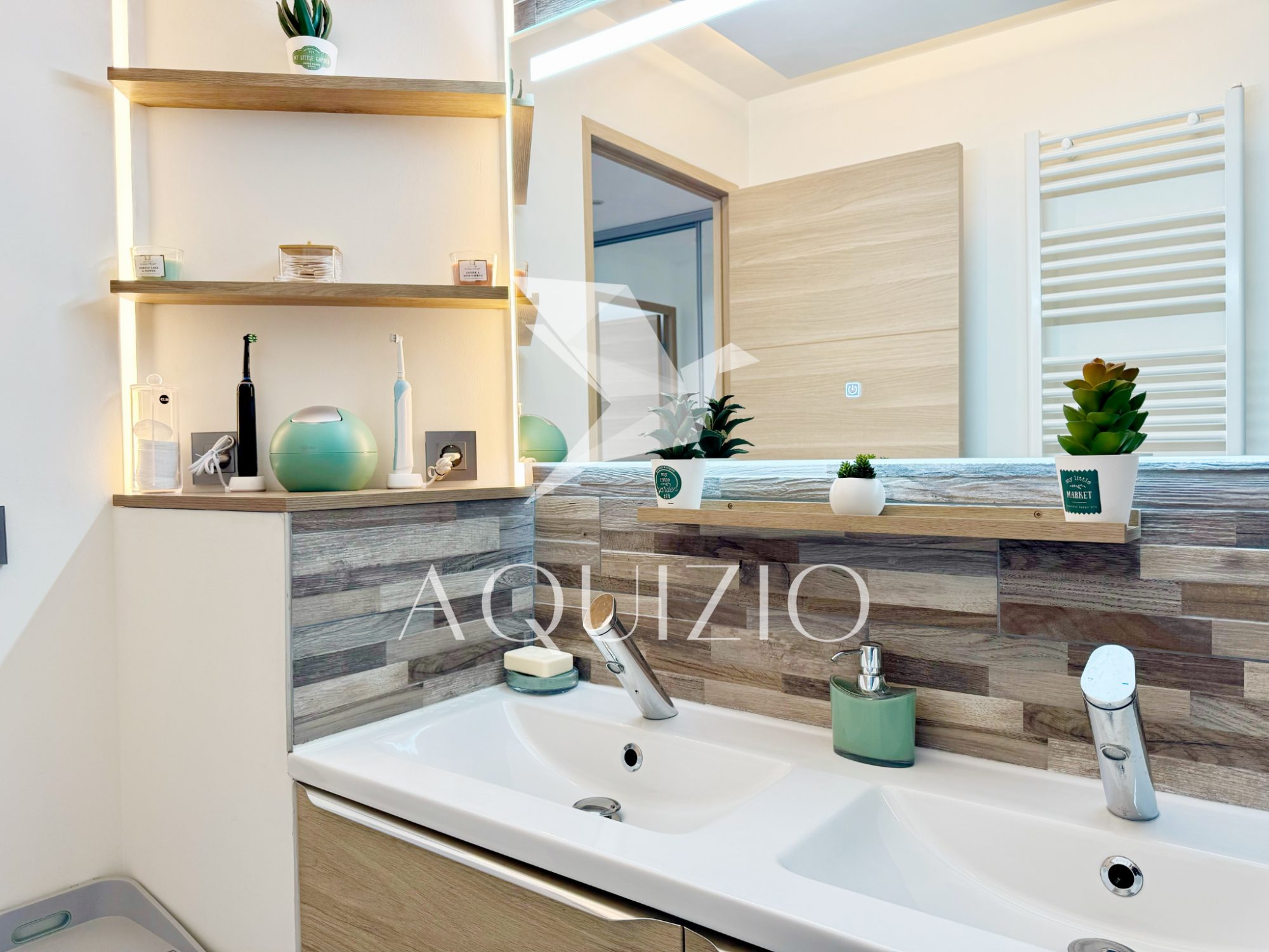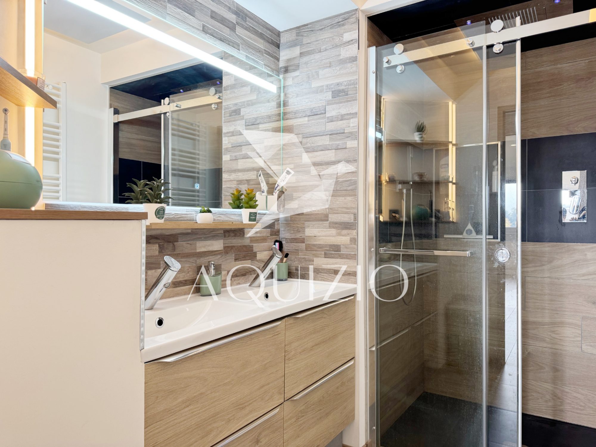 Vous découvrirez deux chambres spacieuses dont une avec son propre dressing aménagé et l’autre avec placards intégrés. Vous profiterez également d’une salle d’eau avec lavabo double vasque et douche italienne et son ciel de pluie encastrée ainsi que d’un WC individuel.