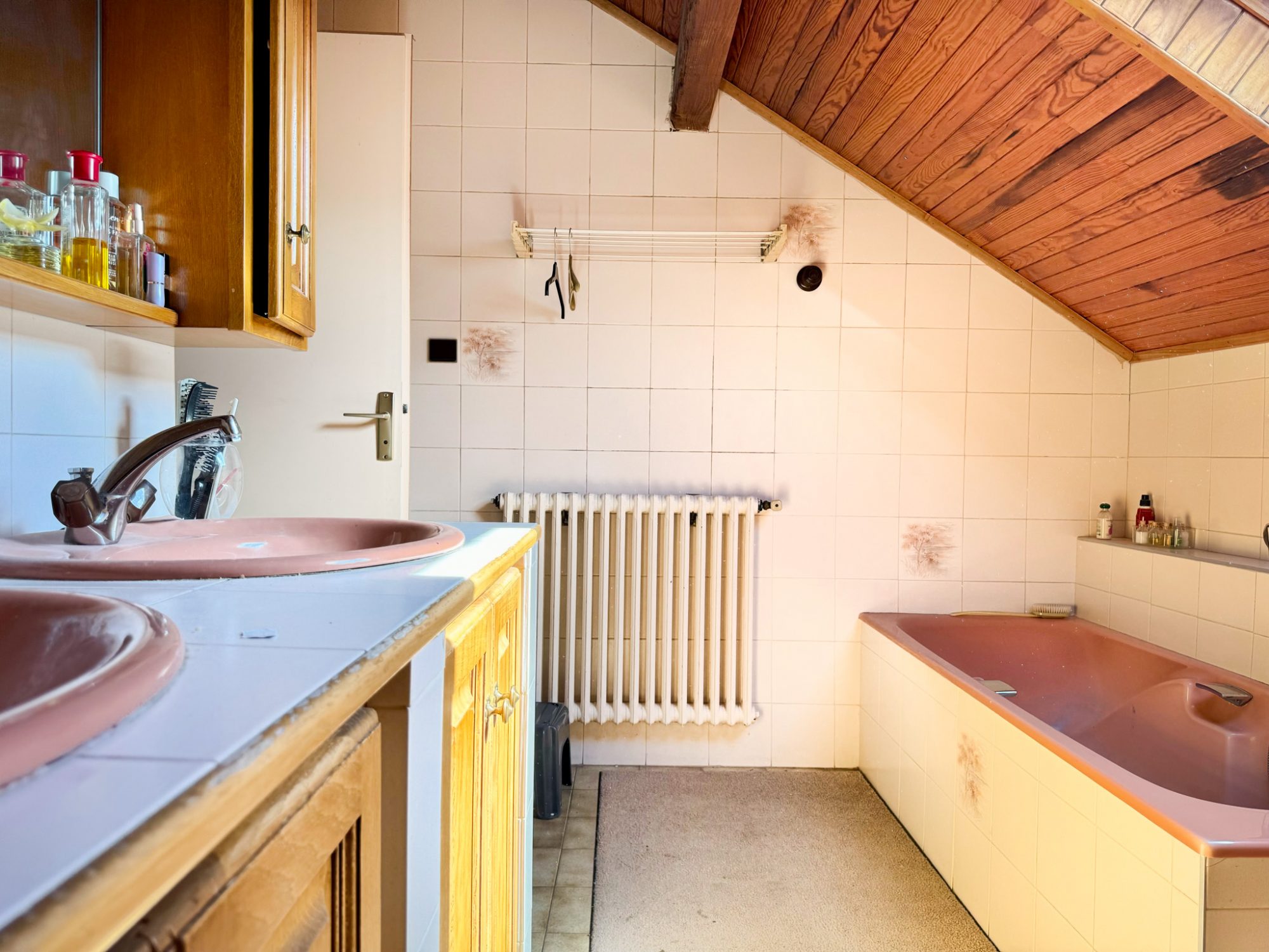 En entrant, vous serez accueilli par un hall d’entrée qui mène à un grand séjour lumineux équipé d’une cheminée, parfait pour des soirées chaleureuses en famille. La cuisine séparée est adjacente à une salle à manger. Le rez-de-chaussée comprend également une chambre lumineuse et des toilettes indépendantes.