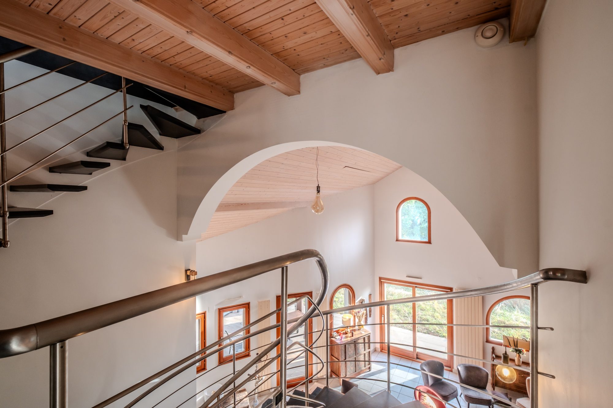 Dès l’entrée, vous plongerez dans une atmosphère pleine de charme alliant courbes singulières et architecture raffinée. Un escalier central domine la pièce de vie de plus de 37 m2 avec une impressionnante hauteur sous plafond, baignée de lumière grâce à ses grandes ouvertures. Vous profiterez d’un spacieux coin cuisine de 19 m2 donnant accès à la terrasse exposée Sud-Ouest pour partager des repas ensoleillés. Une suite parentale de 25 m2 avec dressing et salle d’eau complète ce niveau.