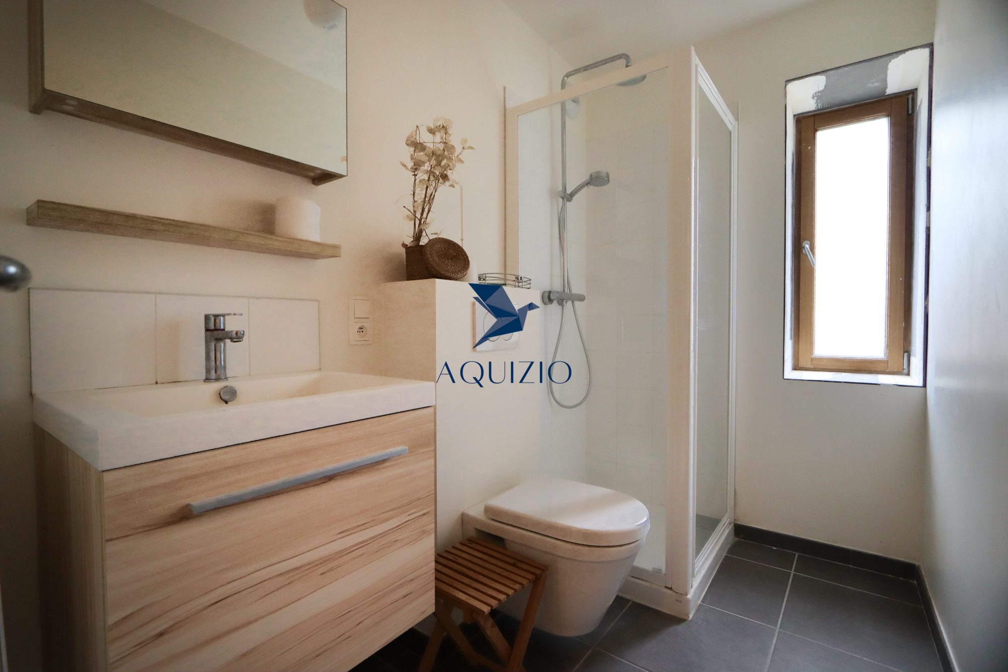 L’entrée se fait directement dans la pièce principale disposant de placard intégré, ensuite un linéaire de cuisine fonctionnel a été installé, puis une salle d’eau spacieuse avec WC intégré et une fenêtre.